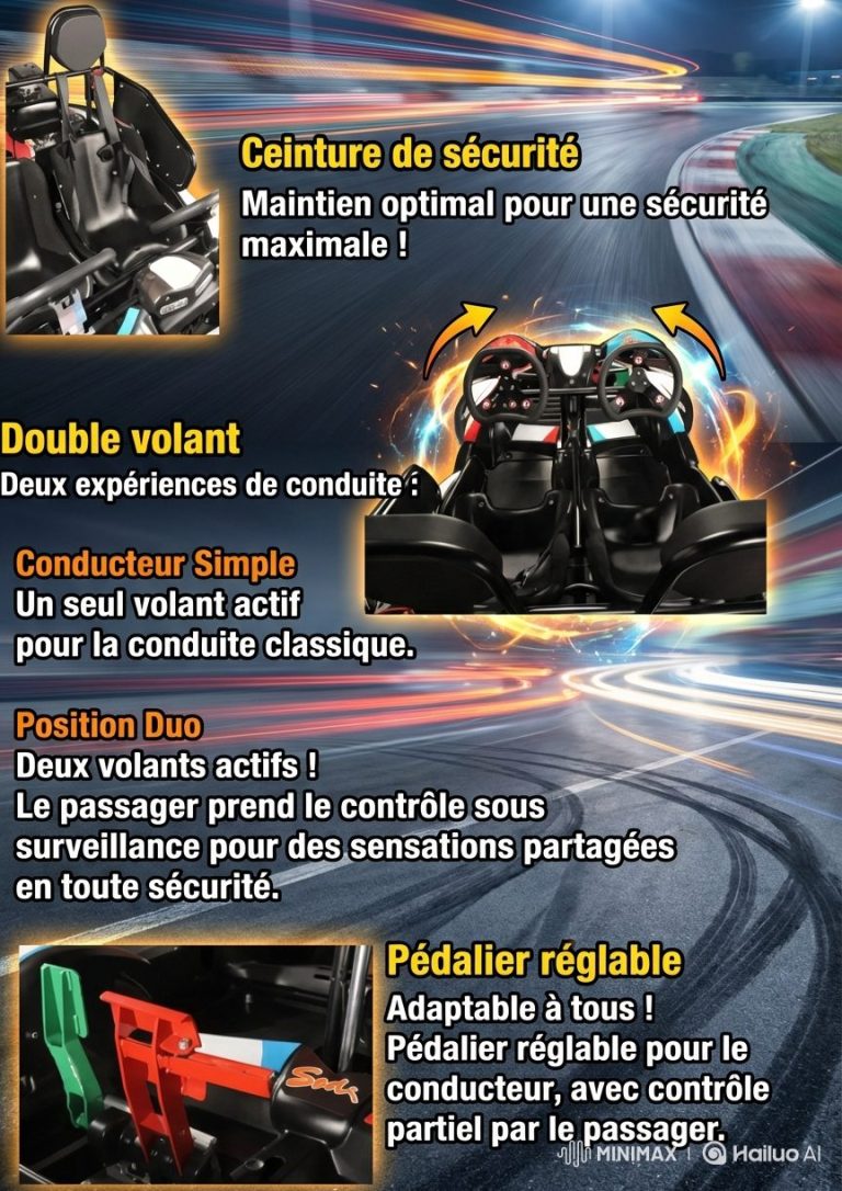 C'est un kart modulable avec de multiples possibilités, ce qui permet à toute personne, y compris les personnes malvoyantes, de vivre un maximum de sensations. La personne peut tenir le volant et ressentir les sensations de pilotage.